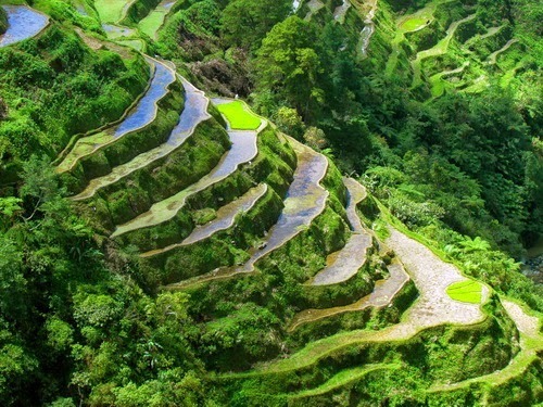 Many readers of Ian Fleming's Bond stories were seduced by the rich life of the jet-setting spy. Monte Carlo, chemin de fer, caviar, champagne. In my forthcoming book, The Ninja and the Diplomat, there is a light scene in an eatery in a shopping mall (for the parking). The following graphic is not of Manila as the street scenes would not look different from similar scenes anywhere else. But the rice terraces of Banaue are something special even though they do resemble rice terraces elsewhere. (Image found by searching the internet for the "rices terraces of Banaue.")