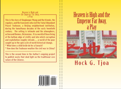 'Heaven Is High and the Emperor Far Away, a Play' by Hock G. Tjoa, was a most enjoyable and informative read of a most tragic period of Chinese history, of a time when China was recovering from the ravages committed by the Japanese army during World War Two, only to plunge into the civil war as the Communists rose to power. The play gives us a glimpse of everyday life in this time, by letting us experience it through the goings on within a teahouse that had survived decades of power struggles and wars.