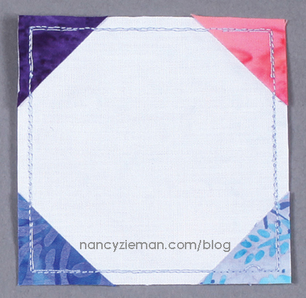 Lastly, stitch around the marked perimeter line to secure the block. Trim per the instructions.