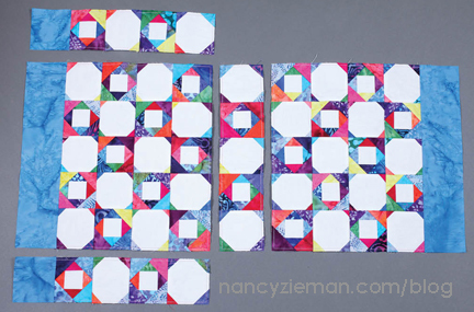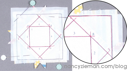 Simply follow the detailed directions included in the package to apply each fabric section in consecutive order, similar to the construction of the Square-in-a-Square block.