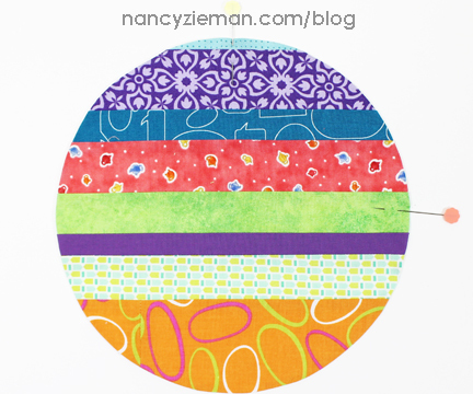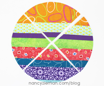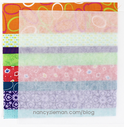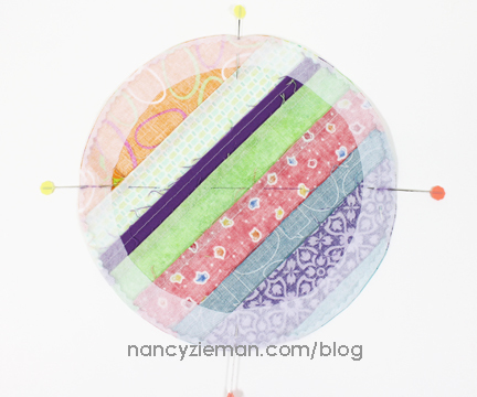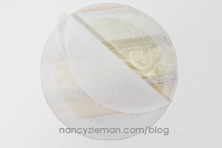 Trace the lines on this “light” colored base fabric. These will be your stitching lines. Then, begin layering the other fabrics under this piece to introduce the color scheme.