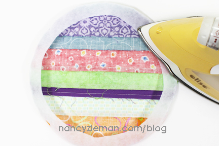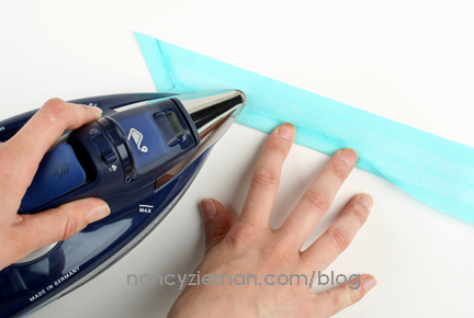 Start pressing along the folded edge with a mini-iron, working to the outer edge to eliminate any wrinkles.