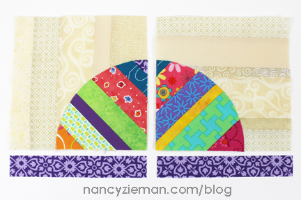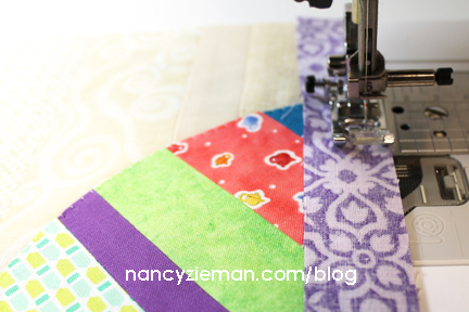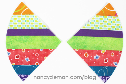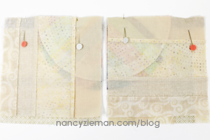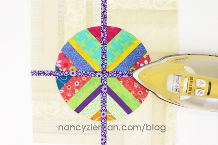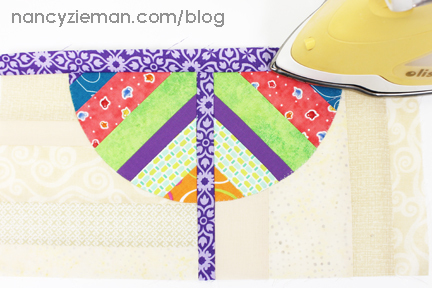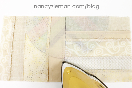 Continue in sequential order to add fabric sections, fold, and trim. Press each section along the way.