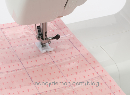 Use the Free-Motion Quilting Foot to quilt. Use the paper as a guide.