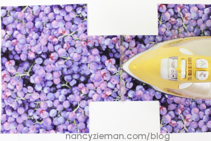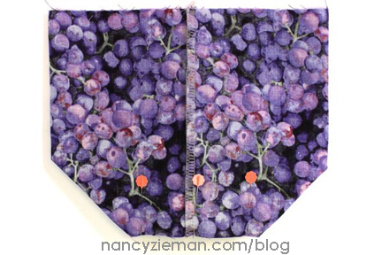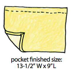 Turn under 1/4″ on the bottom and sides of the pocket fabric.