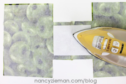 This block may or may not be an original arrangement of 1/2-square triangles. My guess is that it has been created before, but since I couldn’t find it in print, I boldly named it Nancy’s Spool.