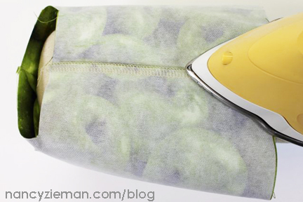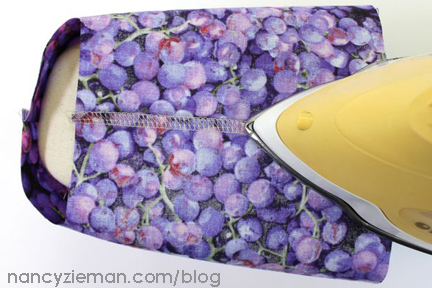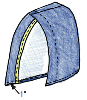 Turn the open edge of the hood 1″ to the wrong side; press and pin.