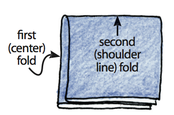 Then, fold the wrap body fabric in half again, to create a second fold in the fabric.
