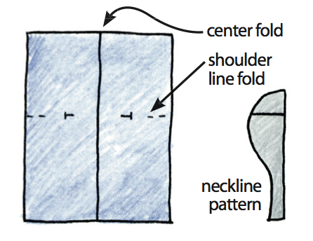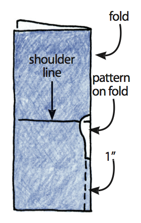 Place and pin the pattern on the center front fold of the wrap body, aligning the shoulder line marking with the fold mark.