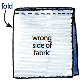 Mark the foldline on each side of the fabric with pins or a disappearing marking pen, as illustrated.