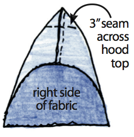 Sew a 3″ seam across the point of the hood back, as illustrated.