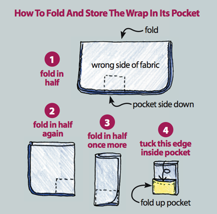 Here’s how you can fold the wrap and store it in the stitched pocket: