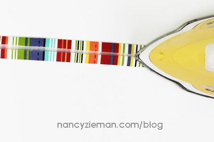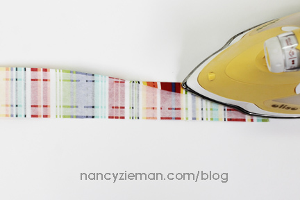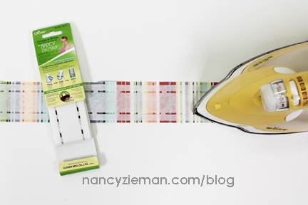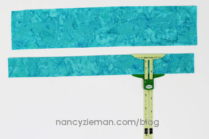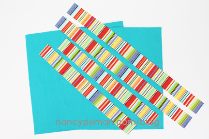 Fuse the Create-A-Strap to the wrong side of the 2-1/2” crosswise strips.