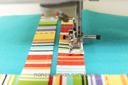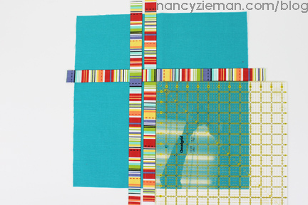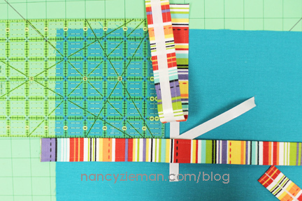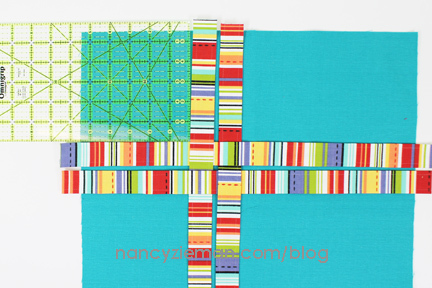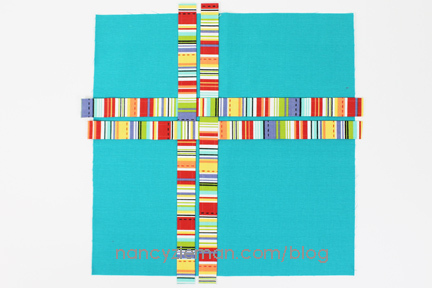 Use a quilter’s ruler to guarantee the strips are placed at right angles.