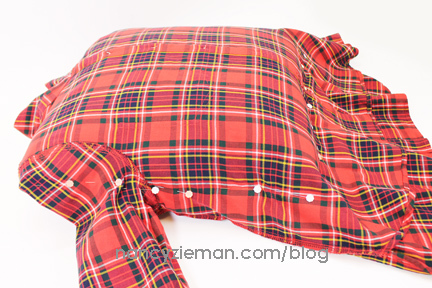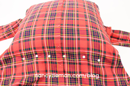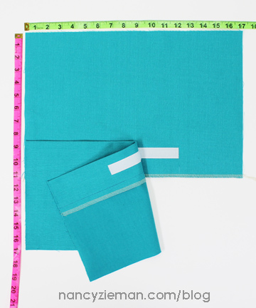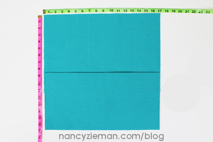 Cut two 17″ x 11-1/2″ rectangles for the back of the pillow (see blog for size).
