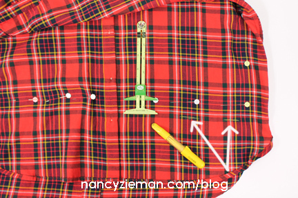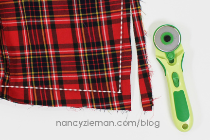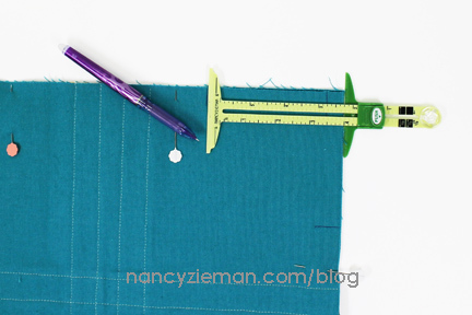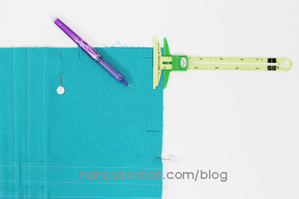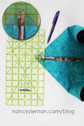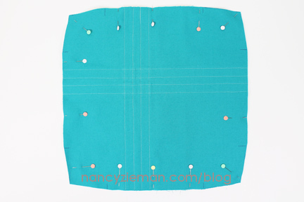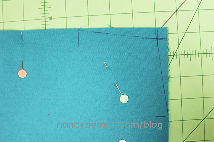 Note from Nancy: Consider making a template of the size of the shaped corners from poster board to quickly mark the pillow corners.