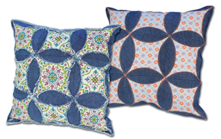 You can, of course, make any pillow design you wish. I thought I might share this easy pattern to spark your creative juices. The Lattice Pillow features four machine appliquéd strips of fabric interlaced on a solid square. The pillow back is created in an envelope style and uses a Velcro closure.