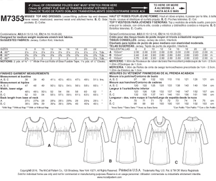 McCall’s M7353 Knit Top/Dress Pattern, please leave a comment below and let us know what view you’d like to make. The McCall Pattern Company will give away one pattern to one US resident in the 48 contiguous states.