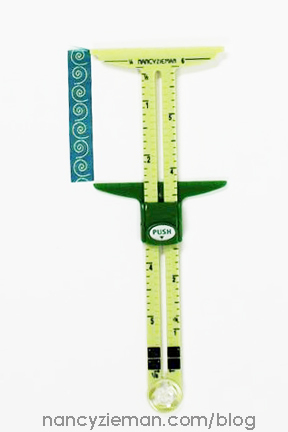 Measure, using the sliding gauge, and cut two 2-1/2″ lengths of ribbon, PER BAG.