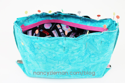 In part two of the TV show, and in her book, Mary shares her easy zipper technique for the hidden zipper used to make the Travel Trio Bag Set (pictured above). The clever recessed zipper adds style to this collection of bags.