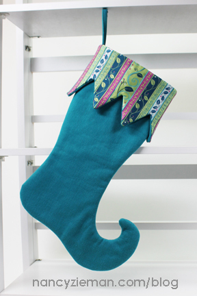 Ta-dah! The Ribbon Embellished Elf Stocking is complete and ready for the Stocking Sewing Challenge !
