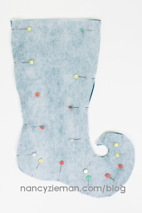 Note from Nancy: If you choose to add quilting to the body of the stocking, complete that step now.