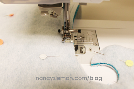 Use a 2.5 mm straight stitch to sew directly on the traced lines.