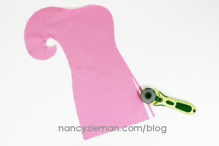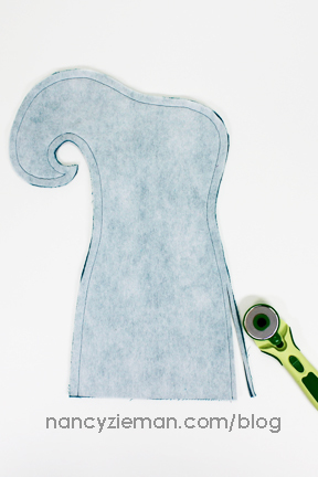 Cut out two of each: stocking fabric, lining fabric, and fusible fleece.