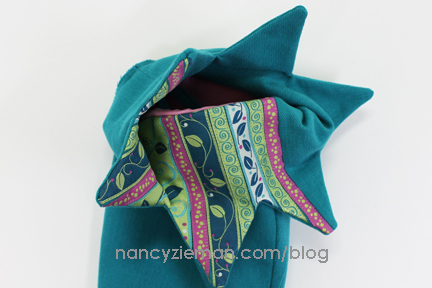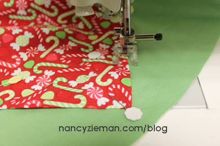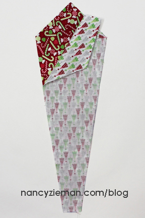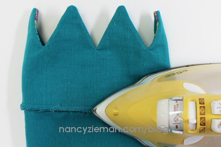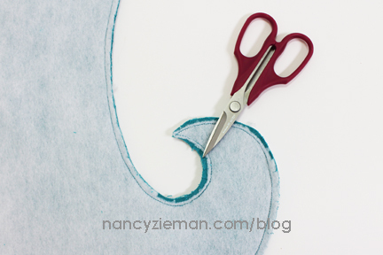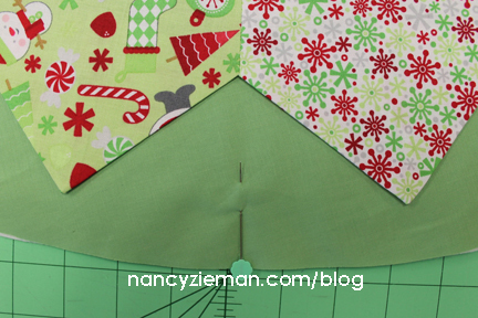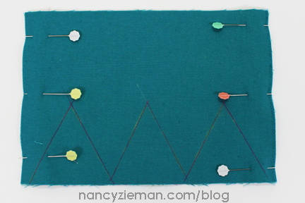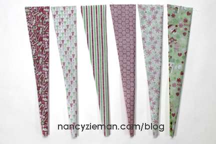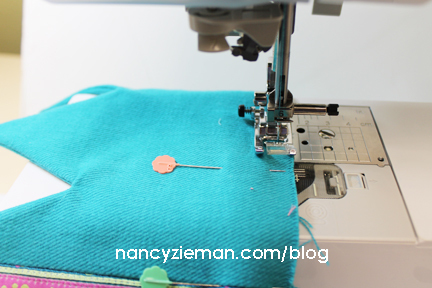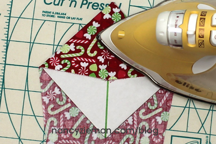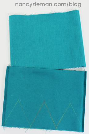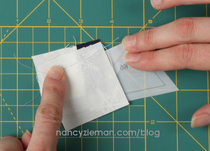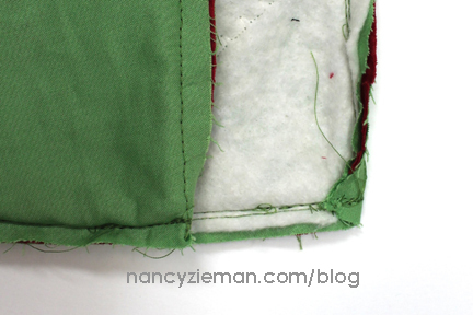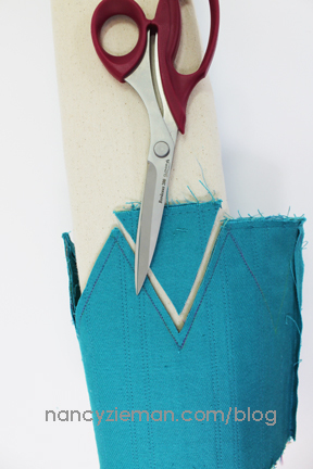 Cut away the triangles leaving a 1/8″ seam allowance.