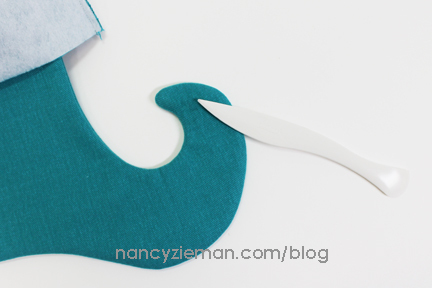 Turn the stocking right side out using the Point 2 Point Turning tool to create a crisp toe. Press.