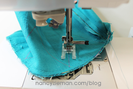 Use 50-wt. thread ; when you have multiple layers of seam allowances on top of each other, you want everything to stay as low-profile as possible.