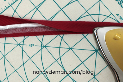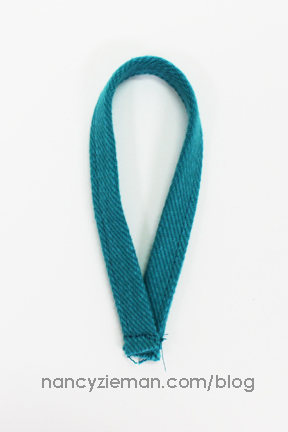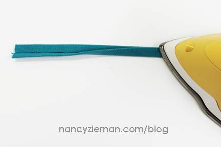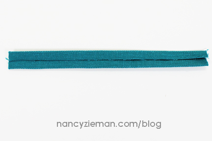 Fold the 1-1/4″ x 8″ piece of fabric in half lengthwise.