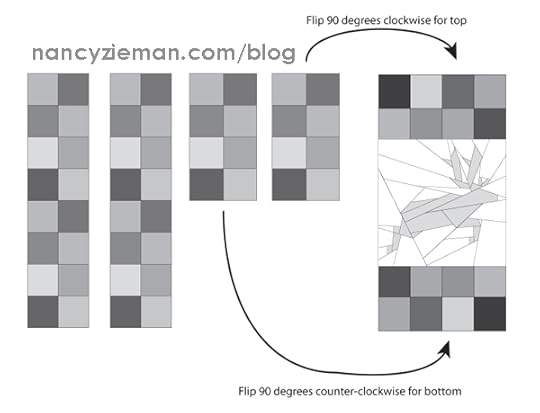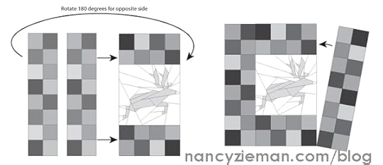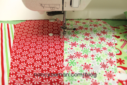 Choose one or more strips to use for the reindeer silhouette. If you use multiple fabrics, you can alternate them as you sew for a random, organic look.