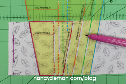 Press your seams and rotary cut six strips from each of your two stacks (a total of 12 strips).