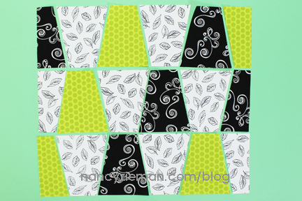 Once each section is pieced and pressed, you’ll want to trim the fabric to the edges of the seam allowance and set aside.