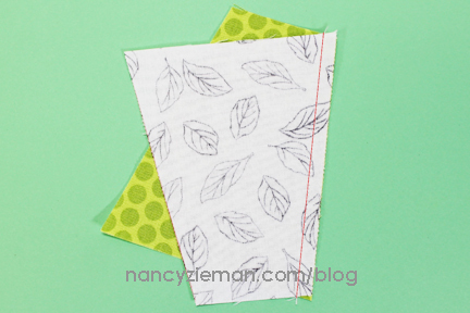 Flip over so that paper is facing printed-side-up, holding everything in place, and stitch (don’t forget to add 2–3 extra stitches at the beginning and end for added security). Fold the paper back, trim your seam to 1/4″ and press open.