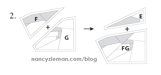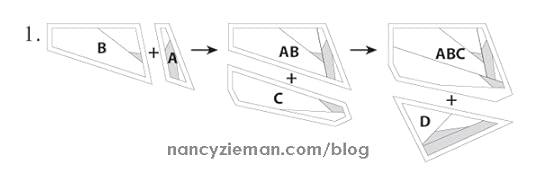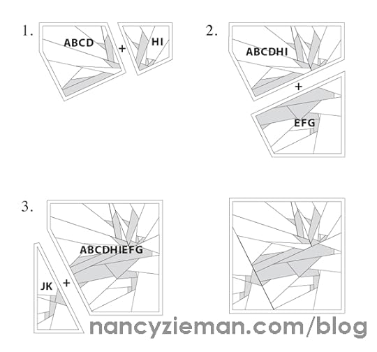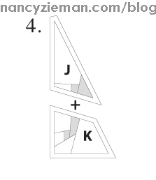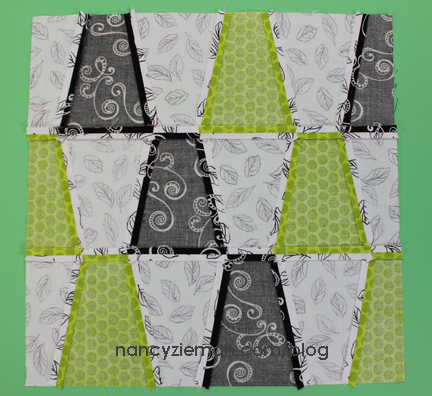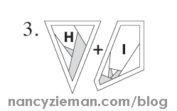 Once the paper is removed from each group (remember, do each group one at a time!), stitch the sections together in the following order, pressing each seam as you go: