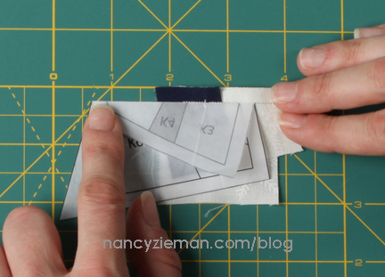 Remove the translucent foundation paper from each grouping as you sew (this prevents confusion). I use a pair of tweezers to really get in there and grab from the corners.
