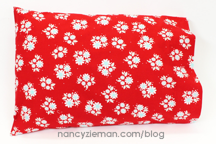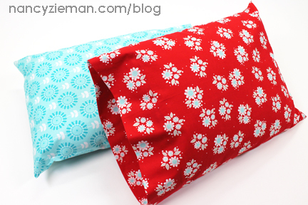 Here’s a quick sewing tutorial for a super-easy travel-sized pillowcase, which is designed to fit over smaller pillow forms (14″ x 20″); available at most big box retailers. Or, you can sew your own 14″ x 20″ pillow forms (below).