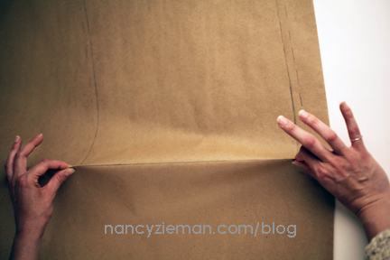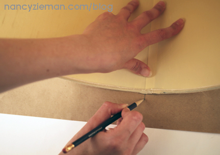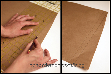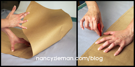 Use a pencil to mark across the kraft paper at the top and bottom of the shade, and add crossmarks at the seam along the top and bottom.