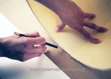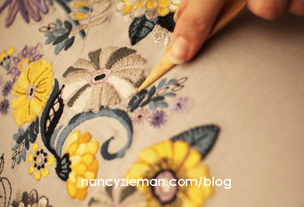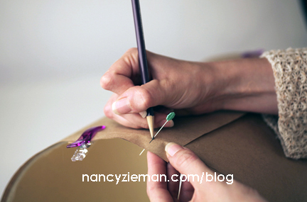 Be sure to lay the pattern back over your embroidered fabric to check for any distortion—re-mark if the lines have to be modified.