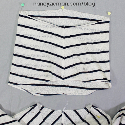 Align edges and pin Front to Back along underarm seams, right sides together, matching notches.