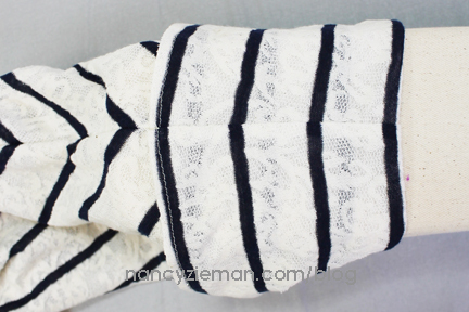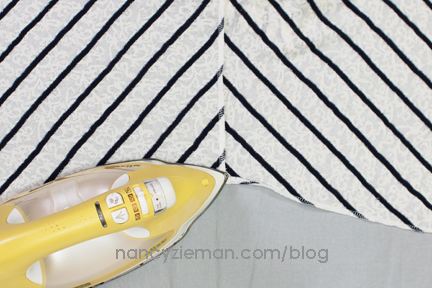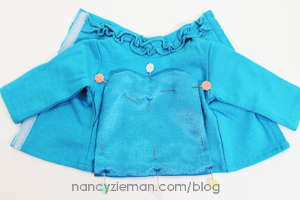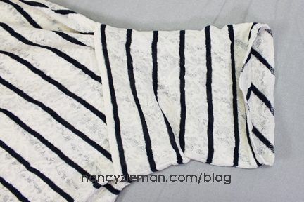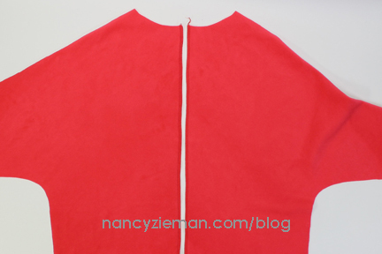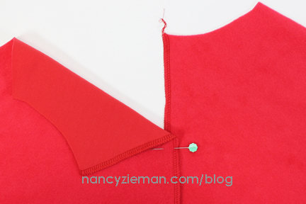 Note from Nancy: With exposed serged edges, it is difficult to have an even stopping and starting point when serging in the round along hemlines and outer edges of the collar and cuffs. For this reason, I serge the outer edges before sewing the side seams. I hope you’ll like that approach, too!
