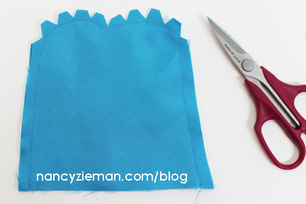 Sew side seams and bottom edge of the tail, right sides together, leaving opening between dots as marked on the pattern piece.