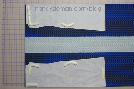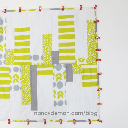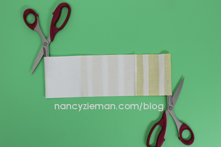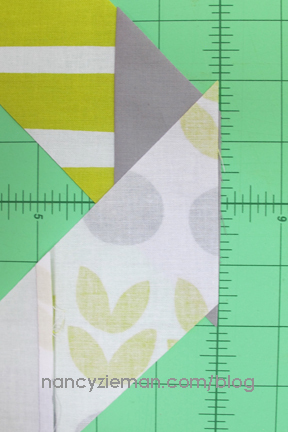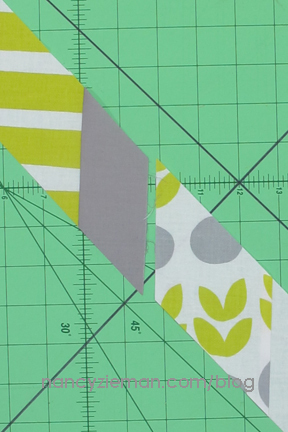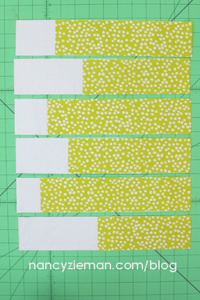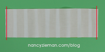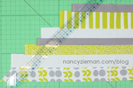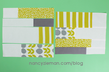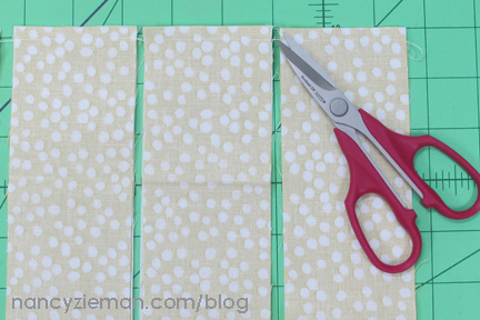 Note from Nancy: When pinning the top and bottom halves, keep in mind that the strip sets will not match up and you will not need to concern yourself with matching intersections. This is a very forgiving pattern.