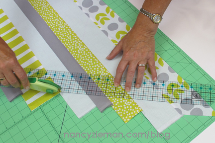 Use a 1/4″ seam allowance to join strips.