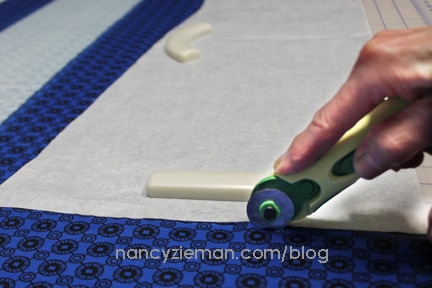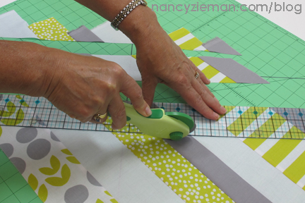 Trim off the staggered ends, even with the long rotary cutting ruler.