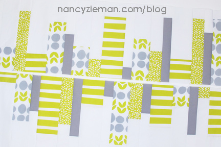 No matter the size—table runner to king—you can sew a quick column quilt in a heartbeat! Colorful accent strips in a variety of widths make up the heartbeat pattern, while the subdued one-color strips add a perfect background for the design. In my book Quick Column Quilts you’ll find this design sewn in various sizes including a baby and queen-sized quilt. In this post, I’ve scaled down the design to a table runner size, 24″ x 57″. See all the different ways to adapt this method in my book or watch Quick Column Quilts Part One on Sewing With Nancy.