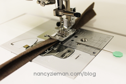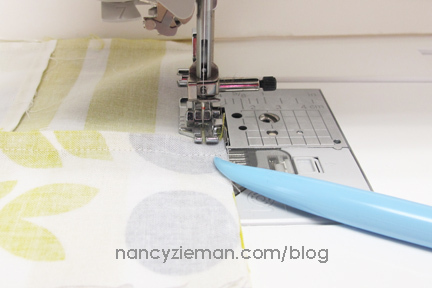 Use a stiletto to help guide the seam allowances under the presser foot.