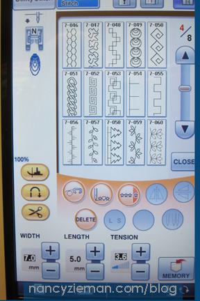 Choose a decorative machine stitch. I chose 7-049, a stacked circle design, on my Baby Lock.